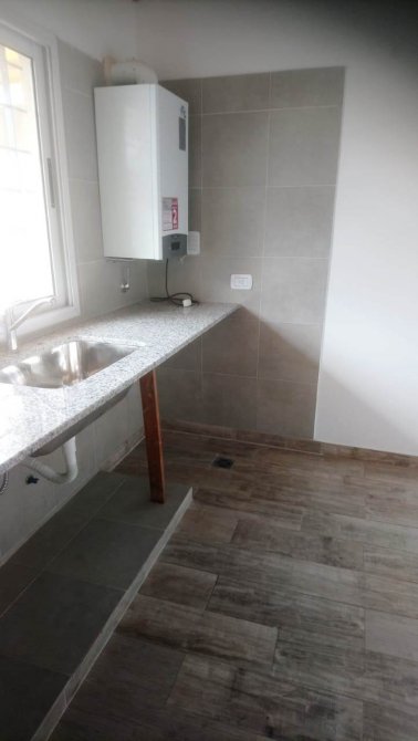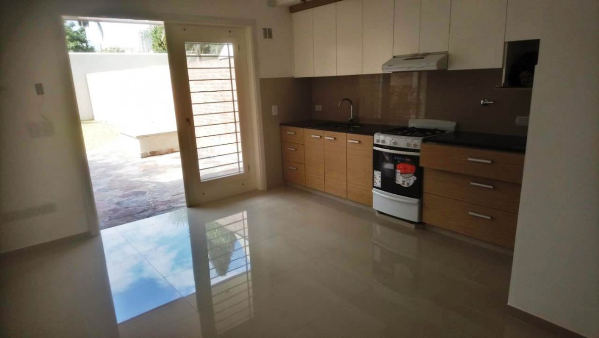 Cocina comedor de 4.07 x 4.00 con muebles bajo mesada y alacena, Puerta balcon hacia el jardin. Fondo libre de 15.40 x 4.30mts