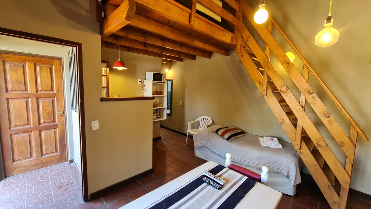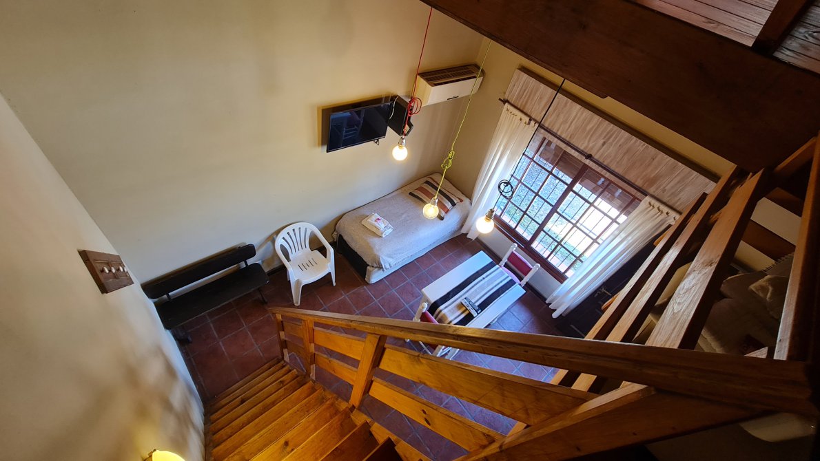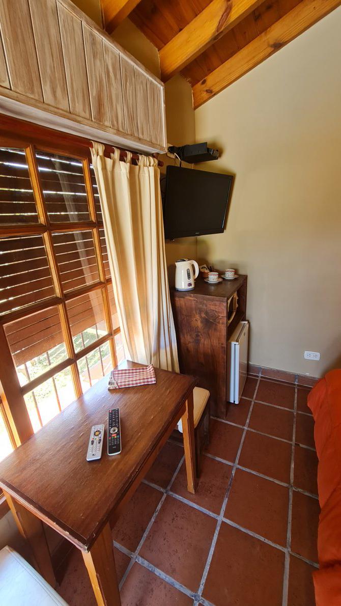 Cabaña 1: Para 3 personas, Baño completo, cama matrimonial, entrepiso con cama, TV, Aire Acondicionado