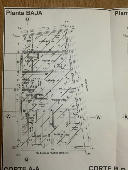 Planta Baja: 6 Departamentos monoambientes 28m2 Aproximados promedio cada uno