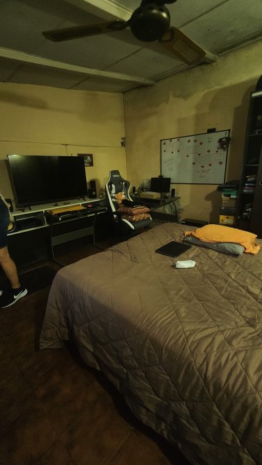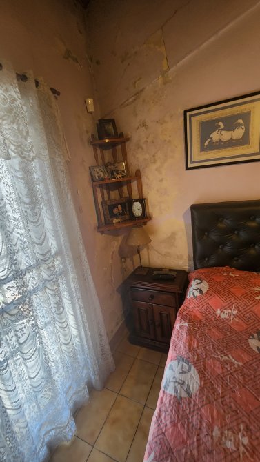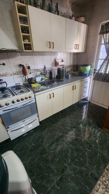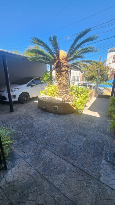 Casa sobre lote de 10 metros de frente por 28 de fondo que consta de entrada de auto y jardín al frente, living comedor con piso de granito de 3.20 x 3.50 mts, cocina con amoblamientos de bajo mesada y alacena. Dos dormitorios de 4 mts x 3.80 mts, uno con piso de granito y otro piso ceramico, baño completo, patio de 9 x 8,66 mts. Depto de dos ambientes en el fondo en estado regular.