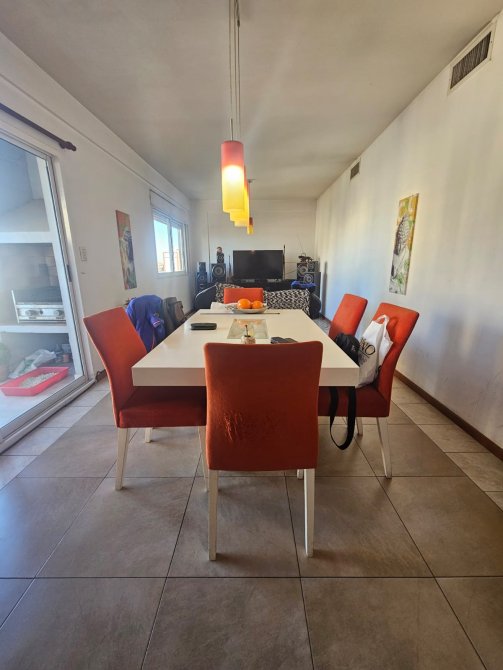 Amplio Living comedor con ventanales al frente, puerta ventana al balcon terraza con parrilla
