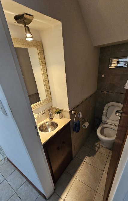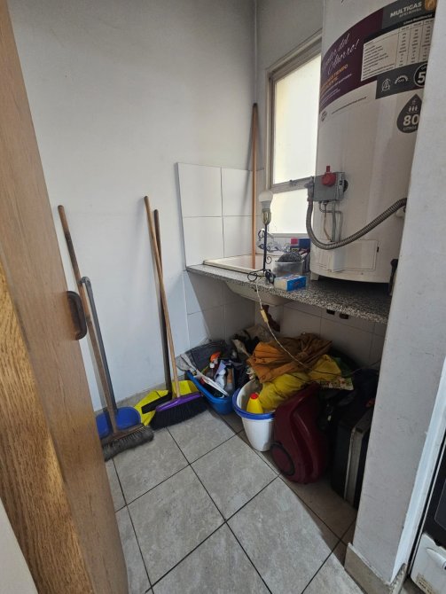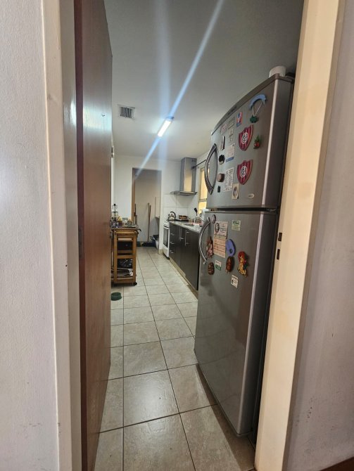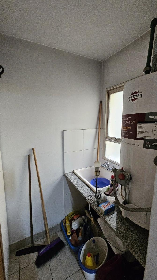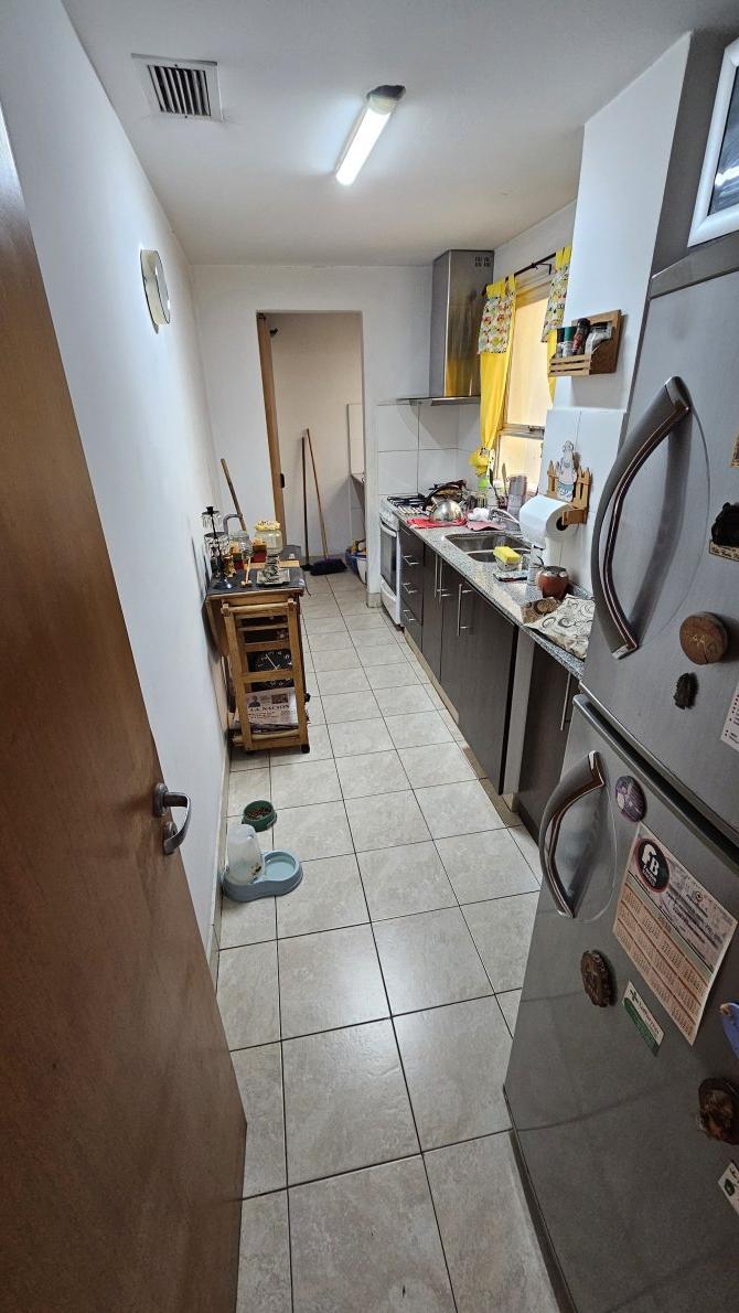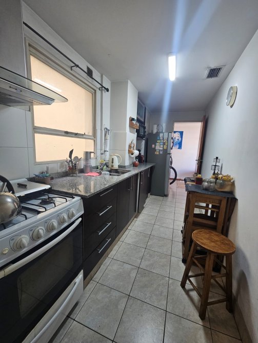Cocina con lavadero separado. Moderno muebles bajo mesada con campana en acero inoxidable.