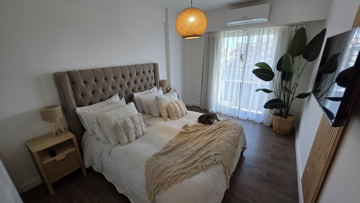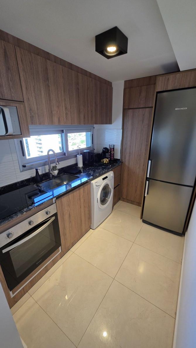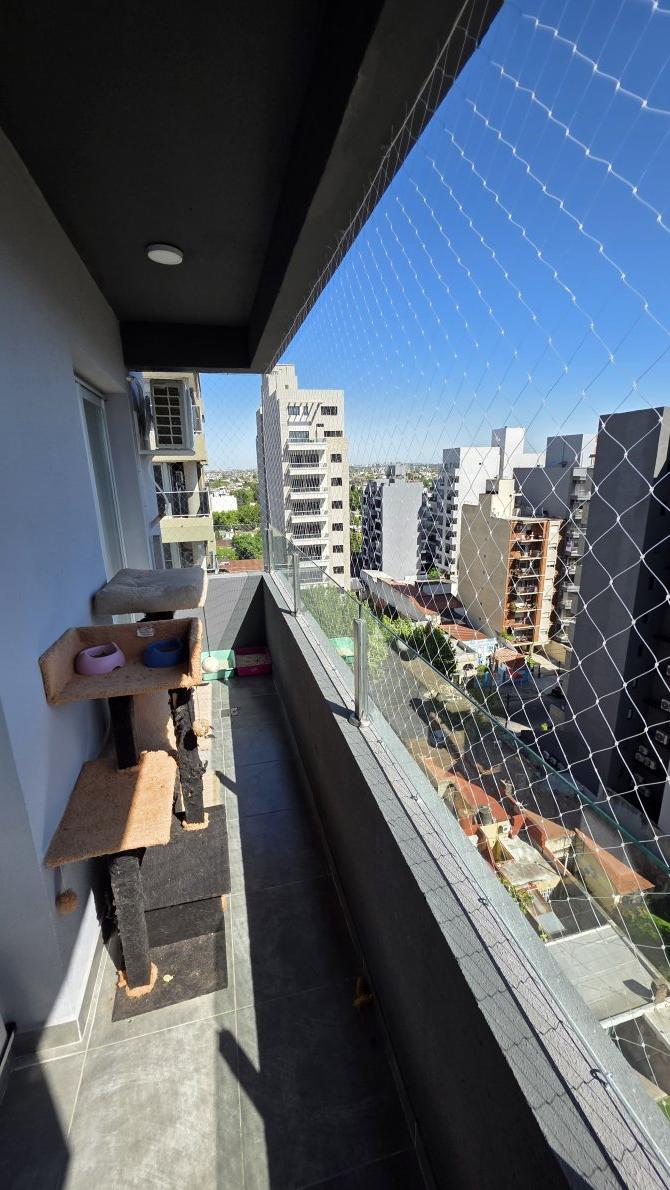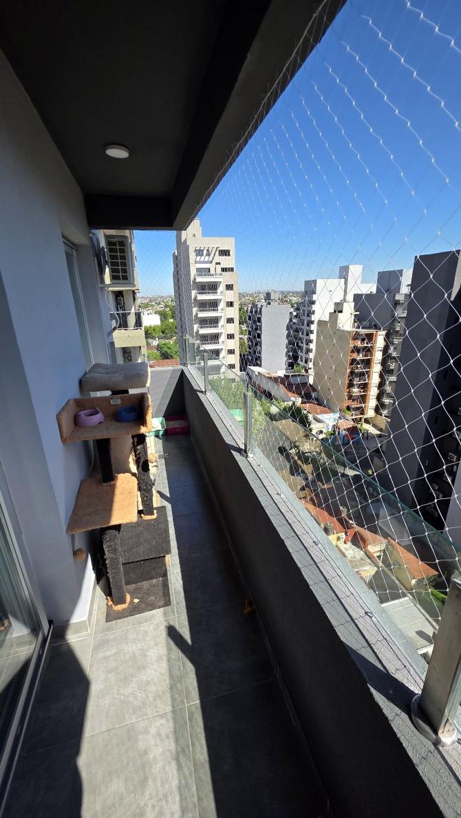 Excelente departamento de 2 ambientes prácticamente a estrenar. Living con pisos porcelanato, Split frio calor y balcón corrido, cocina separada con amoblamientos bajo mesada y alacena con horno y anafe vitroceramico marca Candy, espacio para lavarropas. Toilette de recepción y baño completo, dormitorio piso flotante, placard con interiores y salida al balcón. Cochera fija y baulera. El edificio con S.U.M.