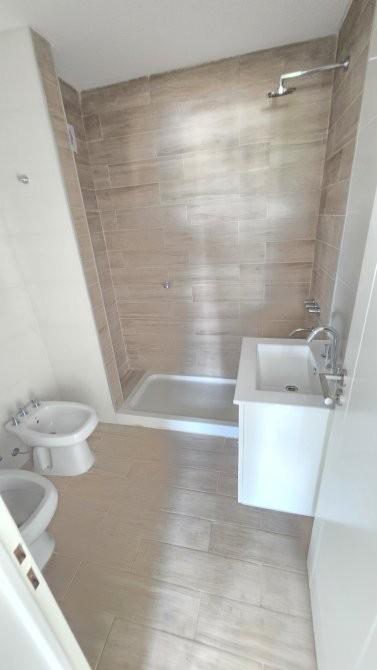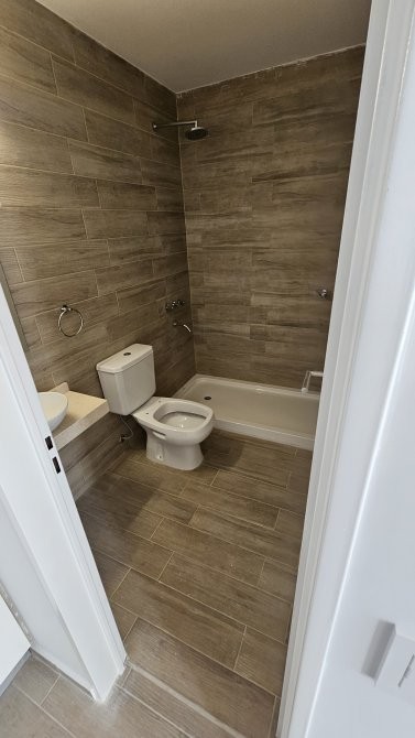 Estar comedor 7,80 x 3,45 mts con pisos porcelanato y balcon, cocina de 3,20 x 2,05 mts con amoblamiento de bajo mesada y alacena, mesada granito y cocina 4 hornallas encendido electronico, lavadero separado de 1,70 x 1,30 mts. 1 baño completo con artefactos sanitarios Roca un dormitorio de 3,35 x 2,60 mts con pisos flotantes y frente de placard, un dormitorio de 3,35 x 3, 05 mts con vestidor de 2,00 x 1,70 mts y baño completo en suite