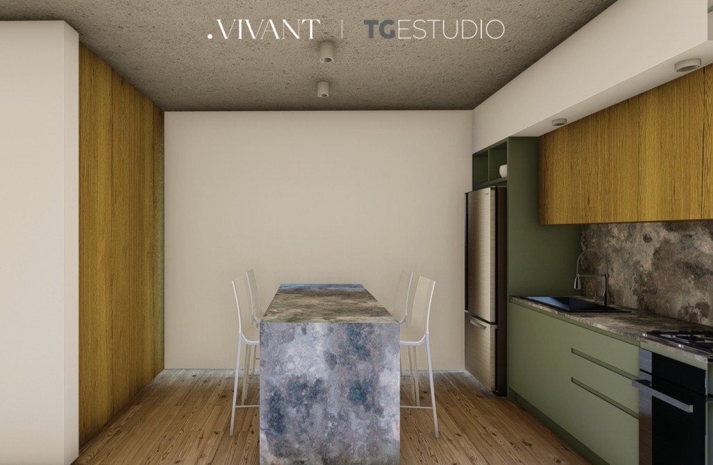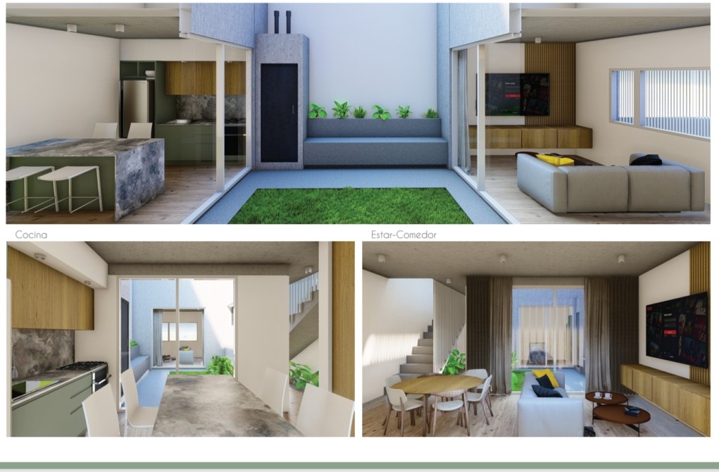 asiste al resto de los ambientes. La presencia de dos dormitorios permite configurar espacios íntimos y confortables, priorizando la privacidad sin perder la