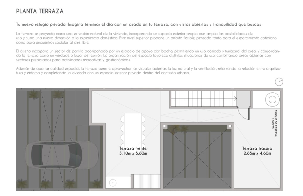La terraza se proyecta como una extensión natural de la vivienda, incorporando un espacio exterior propio que amplía las posibilidades de