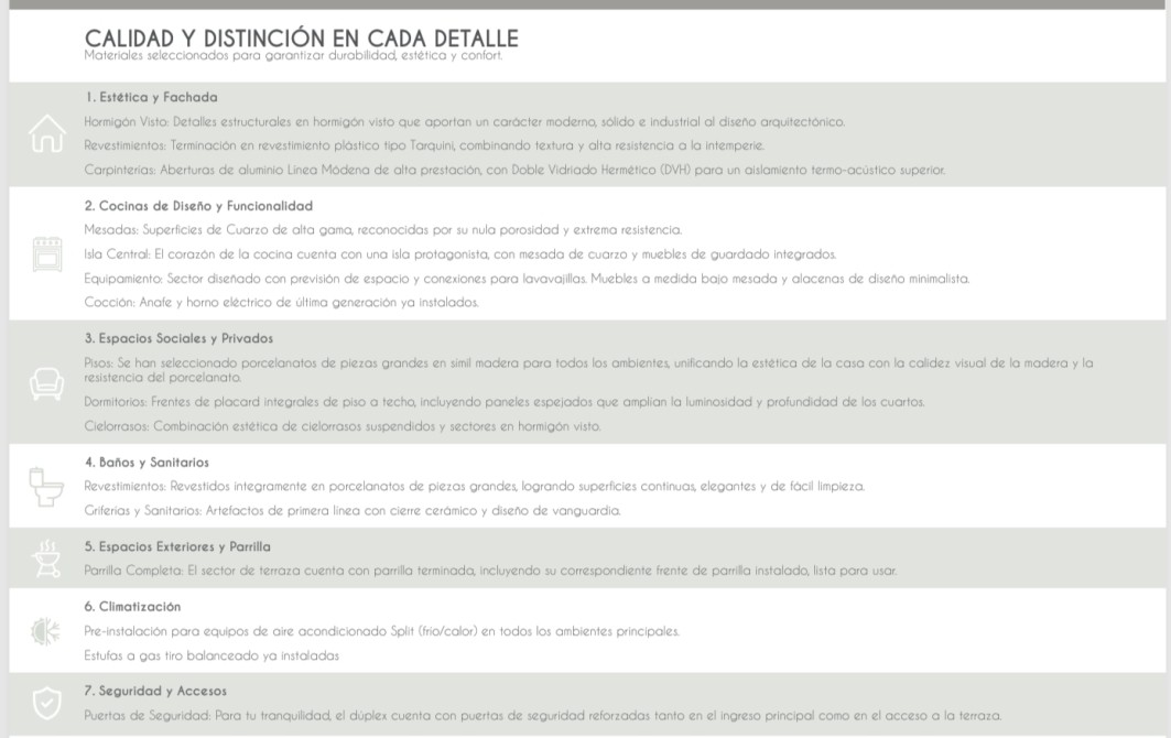 El diseño incorpora un sector de parrilla acompañado por un espacio de apoyo con bacha, permitiendo un uso cómodo y funcional del área, y consolidan